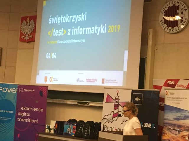 W czwartek 4 kwietnia uczniowie z naszej szkoły (Marcin Zawadzki, Wojciech Rolecki, Maksymilian Goraj z klasy III gimnazjum oraz Natan Struszyński - 8a) wzięli udział w Świętokrzyskim Teście z Informatyki dla Juniorów 2019, który został przeprowadzony w ramach wydarzeń „Kieleckie Dni Informatyki 2019” Miał on na celu weryfikację wiedzy i umiejętności informatycznych w zakresie zaawansowanym. Uczestnicy rozwiązywali 40 zadań w czasie 45 minut.