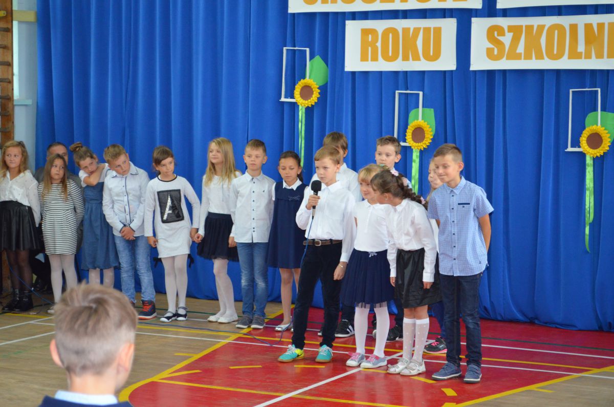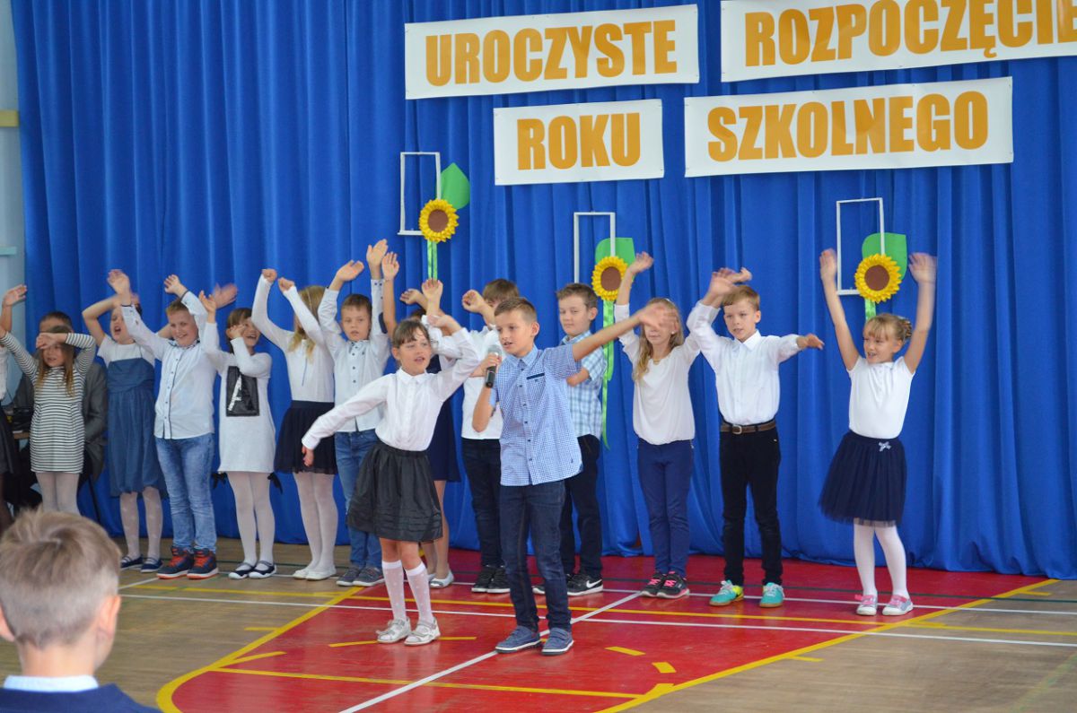 Uroczysta inauguracja roku szkolnego 2017/2018 już za nami. Pani dyrektor Renata Wojtuś ciepło przywitała społeczność szkolną. Uczniowie z klasy trzeciej ,,b’’ swoim programem artystycznym pożegnali wakacje i powitali nowy rok szkolny, serdecznie przyjęli też do swego grona pierwszoklasistów. Wszystkiego najlepszego w nowym roku szkolnym!