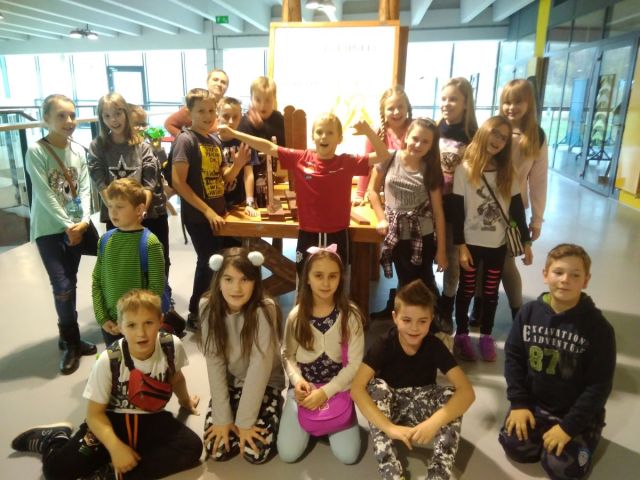 08 listopada uczniowie klas czwartych i piątej „a” uczestniczyli w wycieczce do Centrum Nauki Leonarda da Vinci w Podzamczu Chęcińskim. Wszyscy uczestnicy obejrzeli unikatową wystawę „Człowiek – niezwykła maszyna”, która prezentuje pięć czynności życiowych człowieka: oddychanie, funkcjonowanie układu krążenia, reakcje na bodźce, utrzymanie postawy pionowej ciała i odżywianie. Można było wejść do serca, zobaczyć płuca palacza, zmierzyć potęgę swego skoku, skontrolować refleks i koncentrację, poznać tajemnice układu kostnego oraz przetestować swoją sprawność fizyczną i umysłową.