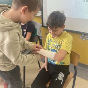 Uczniowie klas I-III uczestniczyli w zajęciach, podczas których poznali zasady udzielania pierwszej pomocy przedmedycznej.