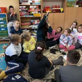Z przyjemnością pragniemy podzielić się informacją, iż w dniu 23 października świetlica dołączyła do akcji ,,Przerwa na czytanie’’. Bardzo chętnie bierzemy udział w takich przedsięwzięciach i tym razem także to uczyniliśmy. Jak wiadomo, jedną z naszych tradycji świetlicowych jest czytanie na dywanie. Wybraliśmy zatem książkę z ulubionej przez dzieci serii Biuro Detektywistyczne Lassego i Mai i wspólnie z dwójką przyjaciół będących głównymi bohaterami tegoż cyklu rozwiązywaliśmy zagadkę o zaginionych diamentach.