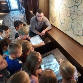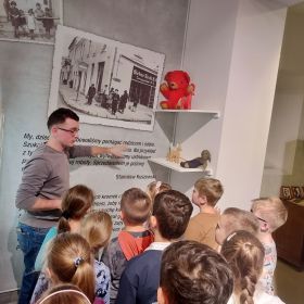 Uczniowie klasy 1b w piątek 4 listopada odwiedzili Ośrodek Myśli Patriotycznej i Obywatelskiej. ,,Jaki znak Twój? Polskie symbole narodowe" to temat warsztatów edukacyjnych w jakich wzięli udział. Uczniowie poznali legendę o powstaniu pierwszej stolicy Polski - Gniezna, historię naszego godła oraz symbolikę barw flagi. Kolejnym punktem programu było zwiedzanie ekspozycji muzealnej. Każdy chciał przymierzyć oficerską czapkę powstańca i usiąść w ławce z rosyjskiego zaboru. To była bardzo ciekawa lekcja historii!