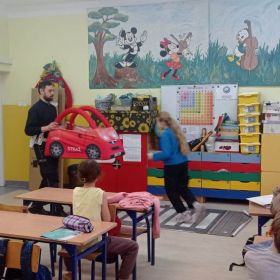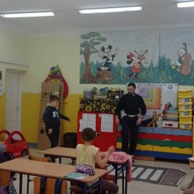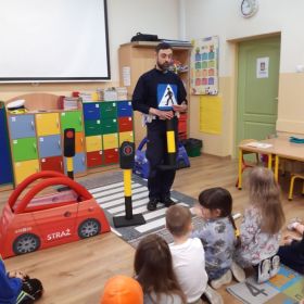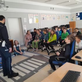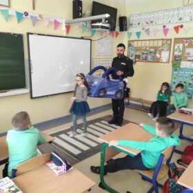 Serdeczne podziękowania dla Pana Tomasza Klimczewskiego funkcjonariusza Wydziału Ruchu Drogowego Komendy Miejskiej Policji w Kielcach za kolejne, niezwykle cenne spotkania z naszymi najmłodszymi uczniami, na których mieli możliwość utrwalić zasady bezpiecznego poruszania się po drodze. Policjant rozmawiał z dziećmi o podstawowych zasadach ruchu drogowego, podkreślił ważną rolę elementów odblaskowych, które każdy uczeń powinien posiadać, powtórzył numery alarmowe z dziećmi i sposób w jaki należy wzywać pomoc. Pan Tomasz przygotował serię filmików oraz „zabaw”, w których uczniowie chętnie brali udział i wcielali się zarówno w role kierowców jak i pieszych.