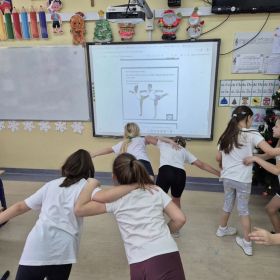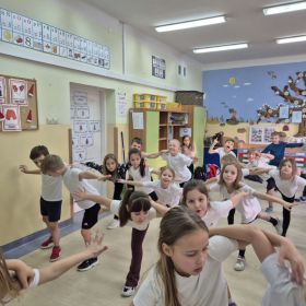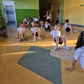 - sportowo-rekreacyjne prowadzone również dwujęzycznie, z naciskiem na rozwijanie koordynacji, sprawności i kreatywności. Uczniowie brali udział w aktywnościach takich jak: Move like animals czy Gymnastic Body Shapes and Point Balances.