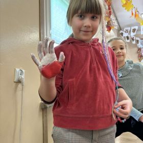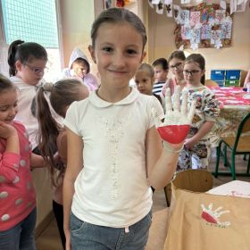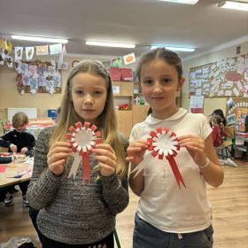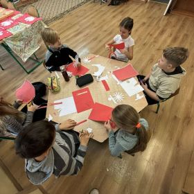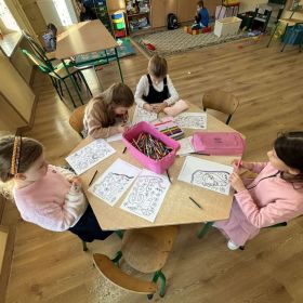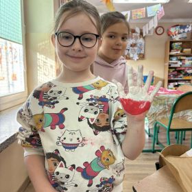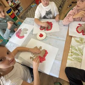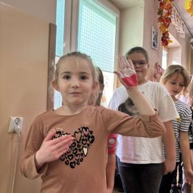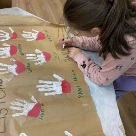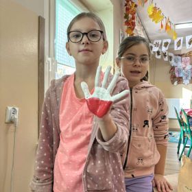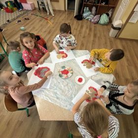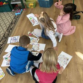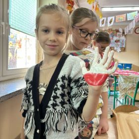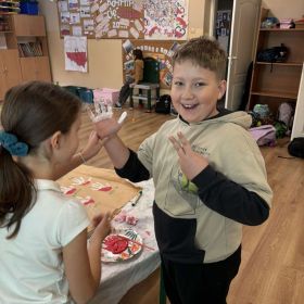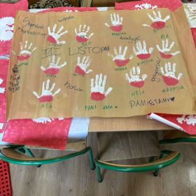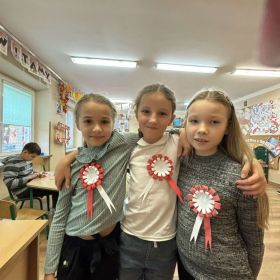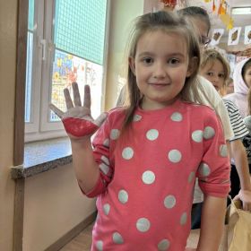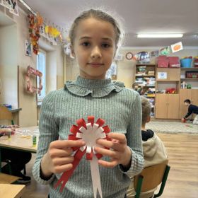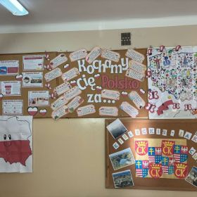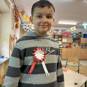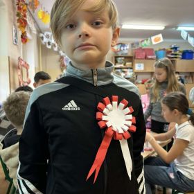 Z okazji Narodowego Święta Niepodległości urządziliśmy pogadankę i burzę mózgów na temat tego, czym dla nas jest ojczyzna. Poznaliśmy i wyjaśniliśmy takie pojęcia, jak: ojczyzna, patriotyzm, niepodległość. Wyszczególniliśmy symbole narodowe i wykonaliśmy karty pracy utrwalające znajomość naszego kraju. Oprócz tego pokolorowaliśmy i skleiliśmy plakat XXL dotyczący naszej ojczyzny, wykonaliśmy gazetki tematyczne, metodą stemplowania zilustrowaliśmy orzełka, odbijaliśmy biało – czerwone łapki na dużym kartonie oraz stworzyliśmy kotyliony w barwach narodowych.