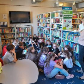 W dniu 10.10.2022 r. uczniowie klasy III b brali udział w bibliotecznych podchodach, podczas których zostały odsłonięte przed nimi kulisy pracy biblioteki w nieco odmienny sposób. Podążając tropem rozmieszczonych na terenie obiektu wskazówek, uczestnicy odkryli nieznane dotąd działy z książkami, nauczyli się korzystać z katalogu bibliotecznego oraz zapoznali się z pracą bibliotekarza. Głównym zadaniem było rozwiązywanie zagadek na podstawie ukrytych podpowiedzi. Gra zakończyła się wizytą w dziale z książkami dla dzieci i młodzieży.
