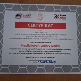 We wtorek 13 stycznia uczniowie klas VI mieli możliwość zwiedzenia siedziby Radia Kielce. Poznali tam historię radia, tajniki pracy dziennikarzy radiowej oraz obsługi technicznej, obserwowali, jak powstaje audycja na żywo, a także mieli możliwość przesłania pozdrowień w eter.