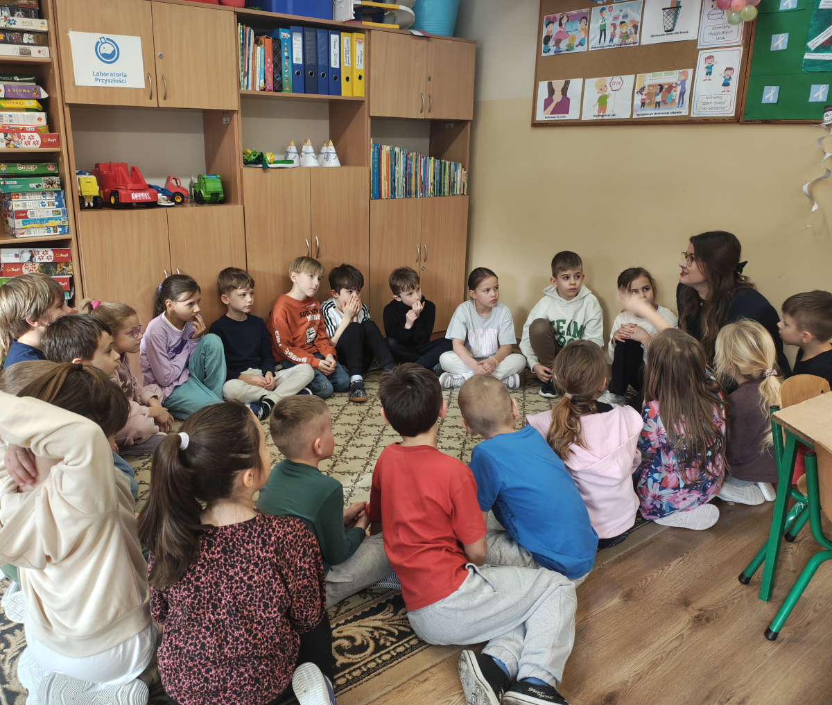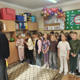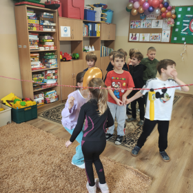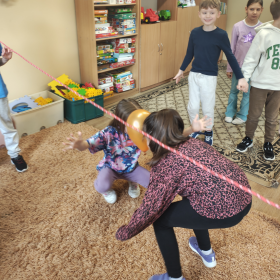 Podczas spotkania uczniowie przypomnieli sobie zasady obowiązujące w świetlicy szkolnej. Kolejnym punktem programu było zadanie w parach, sprawdzające umiejętność współpracy oraz wzajemnego porozumiewania się. Polegało ono na przejściu pod liną z balonem, który uczniowie przytrzymywali wspólnie czołem. Choć wyzwanie nie było łatwe, wszystkim parom udało się je wykonać znakomicie! Kulminacyjnym momentem było uroczyste powtórzenie słów przysięgi, po którym uczniowie oficjalnie zostali przyjęci do grona Świetliczaków. Na zakończenie każdy otrzymał pamiątkowy dyplom oraz drobny upominek.