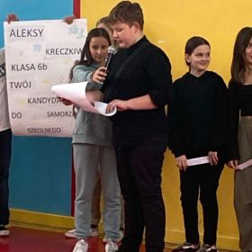 W czwartek 12 października w naszej szkole odbyły się prezentacje kandydatów na przewodniczącego Samorządu Uczniowskiego. Sposób przedstawienia programów, przemowy oraz pomysły zaskoczyły niejedną osobę na widowni. W piątek w asyście opiekuna SU przeprowadzono wybory. Miło nam ogłosić, że tegorocznym przewodniczącym został Aleksander Antczak z klasy 8a, a jego zastępcą Julia Konieczna z klasy 7a. Trzymamy kciuki za to, aby działalność na rzecz uczniów przyniosła dużo satysfakcji. Życzymy owocnej pracy. Opiekunowie SU
