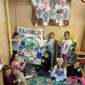 W czasach współczesnych coraz większą rolę odgrywa uświadamianie młodego pokolenia w sferze różnic kulturowych i szacunku wobec odmienności. W naszej świetlicy także staramy się przekazywać dzieciom pozytywne wzorce zachowań oraz uczyć tego, że każdy człowiek zasługuje na godne traktowanie i nie ma miejsca na jakąkolwiek marginalizację, wykluczanie. Na zajęciach przeprowadziliśmy pogadankę pt. ,,Inny nie znaczy gorszy’’, w efekcie której dzieci wiedzą, że różnice kulturowe, rasowe, wyznaniowe czy niepełnosprawności nie mogą być podstawą do gorszego traktowania człowieka. Wyjaśniliśmy znaczenie pojęć: wielokulturowość, akceptacja, tolerancja, empatia, stereotyp, uprzedzenia. Obejrzeliśmy także bajkę animowaną o słoniku Dumbo, który uwierzył we własne możliwości i zaakceptował siebie, mimo iż posiadał nienaturalnie duże uszy. Dzieci zaprojektowały dla bohatera bajki idealny dzień, nadały mu nowe imię wedle własnego uznania oraz wymyśliły zawód, który słonik może wykonywać i przy okazji wykorzystać swój dotychczasowy kompleks jako atut przynoszący korzyści. Była to cenna lekcja dla dzieci, by nigdy w siebie nie wątpiły i dostrzegały wszystko to, co mają w sobie najcenniejsze. Kolejna wartościowa myśl, która zostanie w umysłach dzieci po tych zajęciach, niesie przesłanie, że wcale nie wygląd determinuje wartość człowieka. Maluszki się nauczyły, że wygląd z wiekiem ulega różnorakim zmianom i najważniejsze jest to, co mamy w głowie. Warto jest więc pielęgnować swój wewnętrzny ,,ogród’’ i darzyć samego siebie sympatią, ponieważ to sami ze sobą spędzimy całe życie i warto jest postrzegać siebie w pozytywnych barwach. Miłym akcentem kończącym serię zajęć o tolerancji była integracyjna zabawa ,,Pajęczynka życzliwości’’, w której uczestnicy przekazywali sobie kłębek wełny po wypowiedzeniu komplementu wobec koleżanki lub kolegi. Zabawa pokazała, jakie pozytywne zachowania, cechy charakteru i wyglądu uczniowie cenią w sobie wzajemnie.