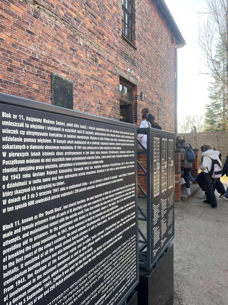 Uczniowie zwiedzili teren Auschwitz I, gdzie zobaczyli bloki więźniarskie, wystawy stałe oraz Ścianę Straceń. Następnie udali się do Auschwitz II