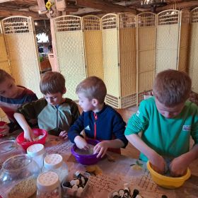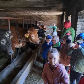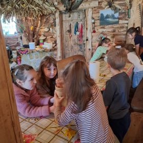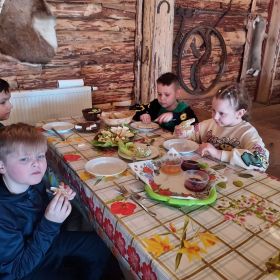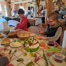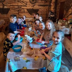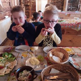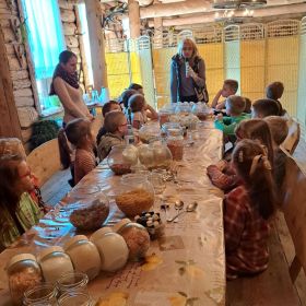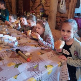 Wykonaliśmy samodzielnie masło ze śmietany z wykorzystaniem maselnicy. Własnoręcznie zrobione masełko z wiejskim chlebem upieczonym na naturalnym zakwasie bardzo smakowało. Warsztaty zakończyliśmy wspólną degustacją serów.