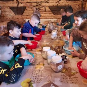 W piątek 14 kwietnia klasy pierwsze wraz z opiekunkami wybrali się na warsztaty pt. ,, Ziołomania w kuchni, w łazience i w domowej aptece” przeprowadzone w Gospodarstwie ,,Wiśniowe Wzgórze ‘’ w Dębnie gm. Nowa Słupia, zorganizowane przez p. Beatę Antoszewską ( prezes Ligi Ochrony Przyrody w Kielcach ).