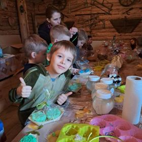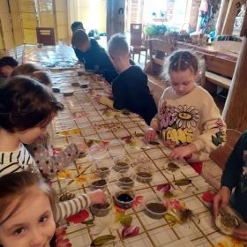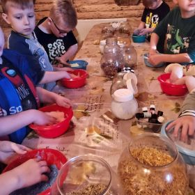 Kolejna atrakcja to : ,, Zrób to sam – ziołowe kule kąpielowe ‘’. Własnoręcznie wykonywaliśmy indywidualnie zaprojektowane kule kąpielowe z dodatkiem aromatycznych ziół i kwiatów o różnych właściwościach. Dobieraliśmy zapach , kolor, kształt.