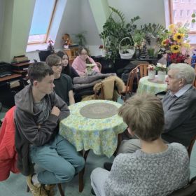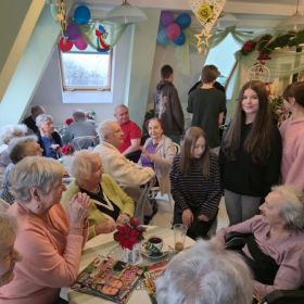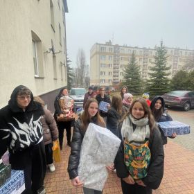 W dniu 18.12.2025 nauczyciele i uczniowie z naszej szkoły wybrali się w odwiedziny do położonego tuż obok naszej placówki Domu Pomocy Społecznej im. Florentyny Malskiej. W tym roku nasza "Trzynastka" chciała pomóc mieszkającym tam seniorom, którzy potrzebowali konkretnych artykułów drogeryjnych, tekstylnych, spożywczych czy plastyczno- artystycznych. Przez 2 tygodnie udało się naszej całej społeczności szkolnej zebrać niema wszystkie potrzebne zasoby. Mieszkańcy DPS-u przyjęli nas niezwykle ciepło. Nasi nauczyciele i uczniowie mieli okazję z nimi porozmawiać i poznać mnóstwo ciekawych historii z ich przeszłości. Wspaniale było móc obserwować jak tak różne pokolenia znajdują wspólny język - starsze pokolenia są skarbnicą mądrości i wiedzy, z której mieliśmy okazję skorzystać. To była dla naszych wychowanków niezwykła lekcja empatii i pokory, a także szybko przemijającego czasu. Nie obyło się bez żartów, szczerych uśmiechów i kilku zdjęć na pamiątkę wspólnego spotkania! Wszystkim, którzy wsparli naszą akcję jeszcze raz serdecznie dziękujemy! Społeczność 13-tki jak zwykle była niezawodna! Wesołych Świąt dla wszystkich!