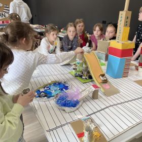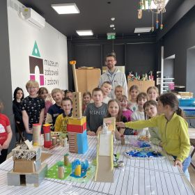 We wtorek uczniowie klasy 2b udali się z wizytą do Muzeum Zabawek i Zabawy, gdzie uczestniczyli w warsztatach plastyczno technicznych pt: Mali architekci wielkich miast. W trakcie zajęć dzieci poznały podstawowe elementy infrastruktury miejskiej, a następnie samodzielnie wykonały makietę swojego miasta, na której nie zabrakło strefy mieszkalnej, budynków użyteczności publicznej, obiektów rekreacyjnych czy terenów zielonych. Uczestniczenie w tego typu projekcie pobudziło wyobraźnię uczniów i było doskonałym ćwiczeniem uczącym planowania i organizacji przestrzeni. Ogromne wrażenie na dzieciach zrobiła wystawa muzealna. Uczestnicy zobaczyli czym bawiły się dzieci kilkadziesiąt, a nawet kilkaset lat temu, oraz dowiedzieli się gdzie kupowano zabawki i kto je wykonywał. Ogromną przyjemność sprawiła uczniom możliwość pobawienia się niektórymi zabawkami. Wizyta w muzeum była niezwykłą przygodą, a wszyscy poczuli się jak w wehikule czasu. Zapraszamy do obejrzenia fotorelacji.
