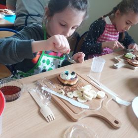 Mogłoby się wydawać, że Tłusty Czwartek to typowo polska tradycja. Nic bardziej mylnego. Brytyjczycy również lubią wykorzystać końcówkę karnawału na objadanie się słodkościami. W ostatni wtorek przed Środą Popielcową brytyjskie naleśnikarnie przeżywają prawdziwe oblężenie. Historia Pancake Day (Dnia Naleśnika), znanego również jako Shrove Tuesday, sięga początków XV w. Czy Pancake Day to tylko okazja do zajadania się? Niekoniecznie! Ciekawą tradycją są wyścigi z patelniami, podczas których podrzuca się naleśnikowe ciasto. Uczniowie z klasy 1b również przygotowali naleśnikowe szaleństwa! Powstała góra słodkich i pachnących placków, a jedynym ograniczeniem w doborze dodatków była nasza wyobraźnia, dlatego nie zabrakło czekolady, bitej śmietany, owoców, syropu klonowego oraz kolorowej posypki. Niestety, wszystkie te pyszności zbyt długo nie cieszyły naszych oczu, ponieważ chęć ich zjedzenia wygrała z frajdą jaką mieliśmy w trakcie ich przygotowywania. To był naprawdę miły, naleśnikowy dzień! Na koniec wspólnie obejrzeliśmy bajkę pt. ,,Mr Wolf's Pancakes!" oraz fotorelację z kultywowania tej tradycji w Wielkiej Brytanii, Irlandii oraz Kanadzie.