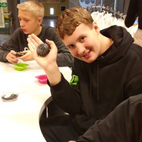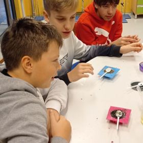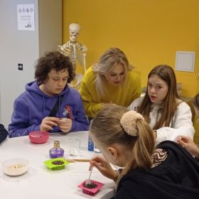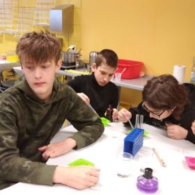 17 listopada uczniowie klas 7a i 7b pod opieką p. E. Partyki – Kowalskiej i B. Sitarskiej uczestniczyli w warsztatach „Poczuj chemię do chemii - estry”, które odbywały na terenie Centrum Nauki Leonarda da Vinci w Podzamczu Chęcińskim. W trakcie zajęć dowiedzieli się, jakie substancje nadają nietuzinkową intensywną woń olejkom zapachowym i perfumom, skąd pochodzi zapach ananasa, pomarańczy czy jaśminu. W laboratorium wykonali szereg doświadczeń dotyczących właściwości i zastosowań estrów, mogli poznać woń przeróżnych zapachów, własnoręcznie wykonać oryginalne mydło i poprzez eksperymentowanie, poczuć prawdziwą chemię do chemii.