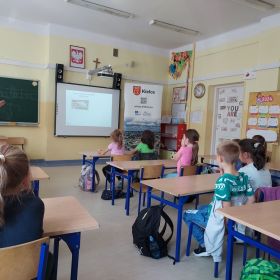 W minionym tygodniu nasi pierwszoklasiści wzięli udział w warsztatach dotyczących segregacji odpadów i recyklingu. Dzieci miały okazję dowiedzieć się dlaczego segregacja śmieci jest tak ważna dla naszej planety oraz jak sami w prosty sposób mogą przyczynić się do ochrony środowiska. Nasi goście z firmy Eneris Surowce zaprezentowali różne rodzaje odpadów i wytłumaczyli dlaczego niektóre z nich można poddać recyklingowi a inne nie. Następnie podczas działań praktycznych w formie gier edukacyjnych, uczniowie w kilkuosobowych grupach segregowali odpady. Na zakończenie wszystkie dzieci otrzymały drobne upominki w postaci odblaskowych opasek oraz kamizelek.