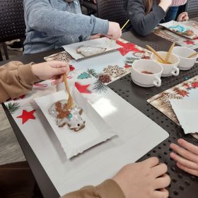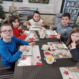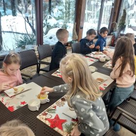 21 grudnia uczniowie klas 1a i 1b odwiedzili Wioskę Świętego Mikołaja w Bałtowie. Dzieci pod opieką przewodnika zwiedziły Muzeum Jurajskie z epoki lodowcowej, Bajkową Krainę Lodu oraz Wioskę Świętego Mikołaja. W każdym miejscu czekało na nich wiele atrakcji. Jedną z nich był świąteczny seans w kinie 5D, warsztaty wypieków i dekorowania pierników czy przejażdżka na Karuzeli Wiedeńskiej. Najwięcej emocji wywołała wizyta w chacie Świętego Mikołaja gdzie uczniowie mieli okazję poznać poczciwego staruszka i przyjąć od niego drobne upominki. Uciechy było wiele… Następnie pomocnicy Świętego Mikołaja- elfy zaprosiły dzieci do zabaw tanecznych. Na sam koniec uczestnicy zwiedzili szopkę z żywymi zwierzętami. Pobyt w Wiosce św. Mikołaja dostarczył dzieciom niezapomnianych wrażeń!