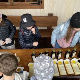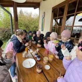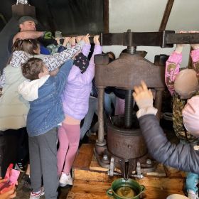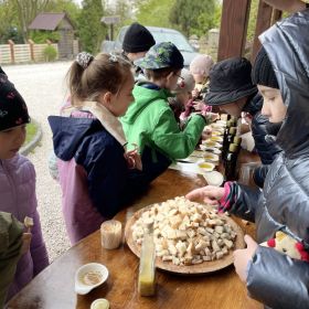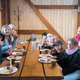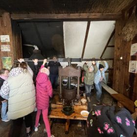 Nie było słonecznie, ale nasze buzie się śmiały. Dlaczego? Ponieważ klasa 3a i 3b, wraz z wychowawczyniami - Panią Anią i Agnieszką były na wycieczce w Olejarni Zagłoby w Mikułowicach, gdzie oleje tłoczone są metodą tradycyjną. Rozpoznawaliśmy ziarna roślin oleistych i ich właściwości, a następnie wspólnie z gospodarzem – Panem Mariuszem tłoczyliśmy olej. Degustowaliśmy różne smaki olei jadalnych. Największą popularnością cieszył się olej rzepakowy i z orzecha laskowego. Pychota. Każdy musiał popracować. Cep to dwa kije, ale jaką ma moc... Potem jedliśmy słodziutkie miody. Najlepiej smakował malinowy. Mniam, mniam! Było też ognisko, pieczone kiełbaski i chlebek . Na koniec niespodzianka - relaks w buskiej tężni oraz zabawy na pirackim statku. Oj działo się!!!