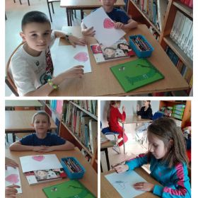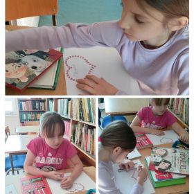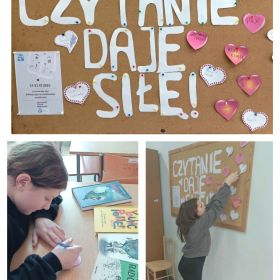Podczas zajęć dzieci stworzyły kolorową wystawę serc z tytułami książek, które dają siłę. Każde serce było małą, osobistą rekomendacją — przypomnieniem, że literatura potrafi wspierać, pocieszać i inspirować.