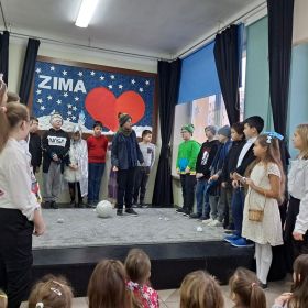 W dniu 26.01.2023 r. uczniowie klasy 3a zaprezentowali inscenizację pt. "Bezpieczne ferie zimowe". Przedstawienie miało na celu zachęcenie dzieci do aktywnego spędzania czasu wolnego podczas zimowego wypoczynku z zachowaniem zasad bezpieczeństwa. Młodzi aktorzy spisali się na medal, co potwierdziły gromkie brawa otrzymane od publiczności.