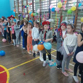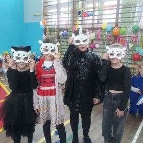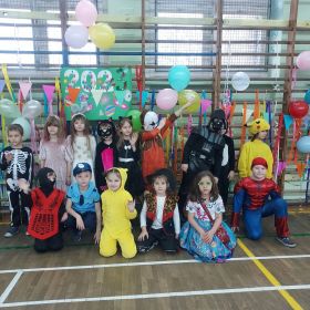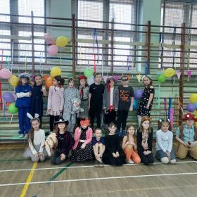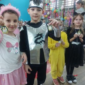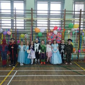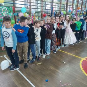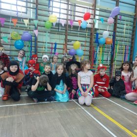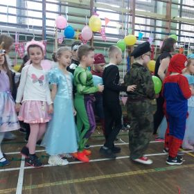 25 stycznia w naszej szkole odbył się Bal Karnawałowy dla klas 0-3. Na pięknie udekorowanej sali pojawiły się kolorowe postacie. Dzieci przebrane były za bohaterów znanych bajek, można było zobaczyć rycerzy, piratów, księżniczki, żółwie Ninja, policjantów, żołnierzy...nie sposób zliczyć i wymienić ich wszystkich. Na sali podczas pląsów było bardzo kolorowo i wszyscy bawili się wesoło. O całą oprawę muzyczną zadbał rodzic naszej szkoły - Pan Łukasz. Wychowawcy klas przygotowali konkursy i zabawy dla dzieci, wśród nich pojawiły się między innymi: kaczuszki, limbo, taniec z balonem, pociągi, korowody i wiele innych. Rodzice zadbali o pyszny poczęstunek w przerwie dla swoich pociech. Kiedy czas dobiegł końca dzieci z żalem opuszczały salę balową. Dzień ten dostarczył dzieciom wielu przeżyć i pozytywnych wrażeń. Dziękujemy dzieciom i rodzicom za zaangażowanie w przygotowaniu pięknych balowych strojów.