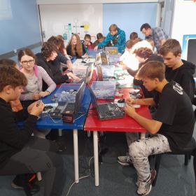 Kolejną atrakcją zwiedzania Centrum Nauki były warsztaty z robotyki, które również zachwyciły uczestników wyjazdu. Po wykładzie prowadzącego, uczniowie zaprogramowali i skonstruowali własne roboty, po czym wprawili je w ruch.