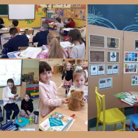 W piątek 25 listopada 2022 r. oddział przedszkolny „0” oraz klasy 1a, 2a i 3a wzięły udział w akcji czytelniczej z okazji Światowego Dnia Pluszowego Misia. W ramach zajęć dzieci poznały krótką historię pluszowego misia oraz książki, w których bohaterem literackim jest właśnie taki miś. Uczniowie chętnie odpowiadali na pytania, m.in. „Z jakiej bajki to miś?”, „Jakie znacie tytuły książek o misiach?”. Następnie wykonali przygotowane zadania, m.in. quiz o misiach w aplikacji Genially, a także odkodowali zakodowanego misia. Wysłuchali również fragmentów książek: „Baśń o zaczytanym Niedźwiedziu i o Króliku, który spadł z nieba” autora Przemysława Wechterowicza oraz „Pamiętnik czarnego noska” autorki Joanny Porazińskiej. Podsumowaniem akcji była wystawa zakodowanych misiów uczniów klasy 2a.