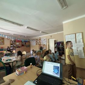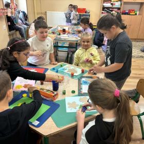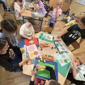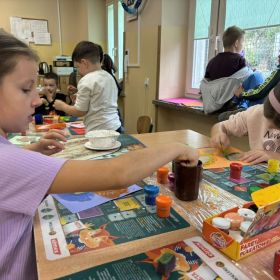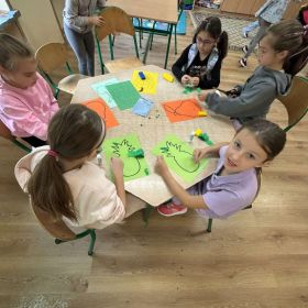 Do naszego przytulnego azylu stopniowo wprowadzamy jesienne akcenty zarówno w formie dekoracji, jak i licznych rozmów dotyczących charakterystyki tejże pory roku oraz konieczności dbania o zdrowie i zwracania szczególnej uwagi na dostarczanie organizmowi dużej ilości składników odżywczych potrzebnych do prawidłowego rozwoju. W ubiegłym tygodniu nasza świetlica dołączyła do całorocznego projektu ,,Zalecenia Europejskiego Kodeksu Walki z Rakiem’’ prowadzonego przez Świętokrzyskie Centrum Onkologii. W związku z tym będą odbywać się u nas regularne zajęcia poruszające istotne zagadnienia profilaktyki zdrowotnej. Zaczęliśmy od rozmowy dotyczącej zdrowia oraz czynników warunkujących prawidłowy rozwój. Z uwagą obejrzeliśmy prezentację multimedialną oraz filmy edukacyjne dotyczące wpływu odpowiedniego odżywiania na nasze zdrowie. Zapoznaliśmy się z piramidą odżywiania, rozwiązaliśmy liczne łamigłówki o tematyce zdrowotnej i wykonaliśmy prace plastyczne ukazujące ulubione owoce Świetliczaków przy pomocy kuleczek z bibuły.