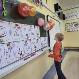 30 września klasa 1a świętowała Dzień Chłopaka. Był to dzień pełen radości i świetnej zabawy, ponieważ chłopcy mieli do wykonania kilka zadań przygotowanych specjalnie dla nich. Wzięli udział między innymi w kalamburach, przebijali balony z zagadkami, bawili się w grę „Kim jestem?”, a także próbowali swoich sił w rysowaniu z zamkniętymi oczami. Śmiechu było naprawdę sporo, bo chłopcy okazali się bardzo pomysłowi i kreatywni!
