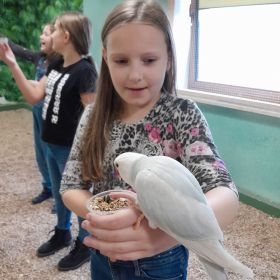 Uczniowie podziwiali i karmili papugi, których naturalne środowisko znajduje się w najodleglejszych zakątkach świata. Mogli poznać ich zwyczaje, zachowania i sposób opieki nad tymi przepięknymi zwierzętami.