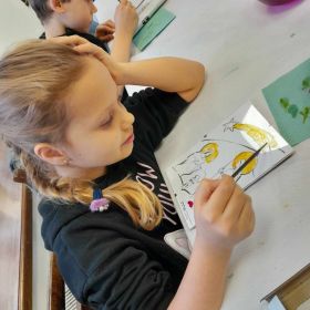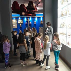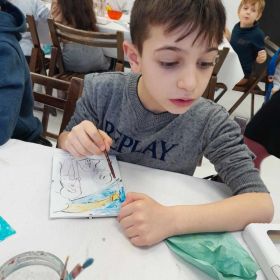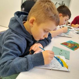 Klasa 1 b wybrała się na grudniowe warsztaty do Muzeum Dialogu Kultur w Kielcach. Tematem spotkania była Szopka Bożego Narodzenia, jako symboliczne przedstawienie tajemnicy nocy betlejemskiej. Warsztaty składały się z dwóch części, najpierw uczniowie zapoznali się z bogatą kolekcją obrazów i rzeźb przedstawiających obrzędowość zimowych świąt, a następnie wykonali własnoręcznie namalowane szopki na szkle. Praca wymagała skupienia uwagi, precyzji i kreatywności, których dzieciom nie zabrakło. Uczniowie zabrali ze sobą piękne prace i miłe wspomnienia.