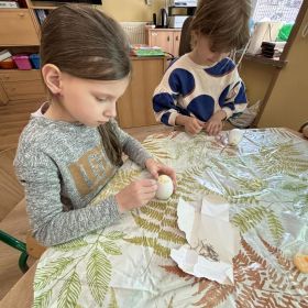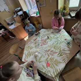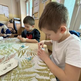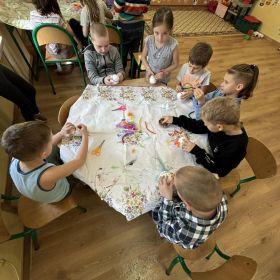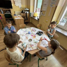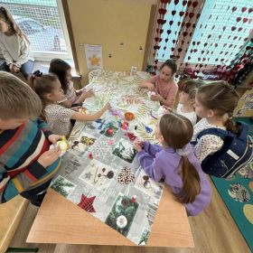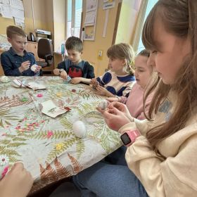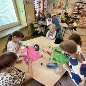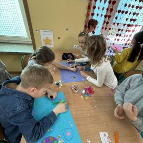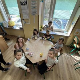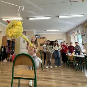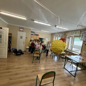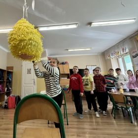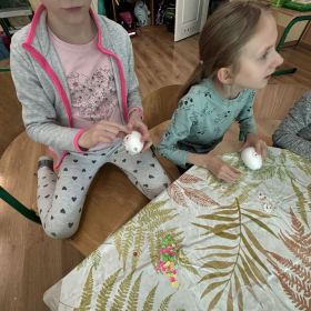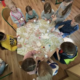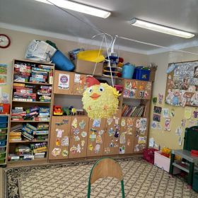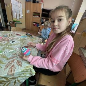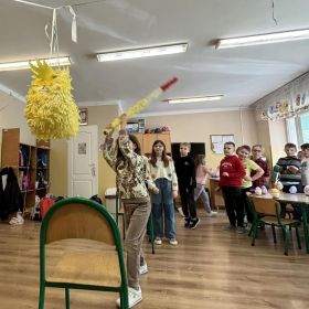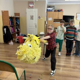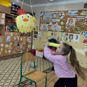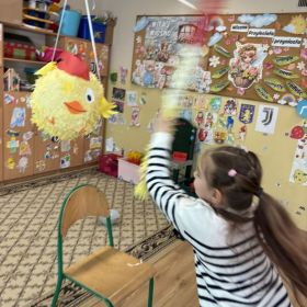W zeszłym tygodniu w naszej świetlicy można było wyraźnie odczuć magiczny klimat świąt. W związku z tym rozmawialiśmy o różnorakich zwyczajach, tradycjach i symbolach świątecznych, jak również tworzyliśmy kreatywne mapy myśli. Wymieniliśmy się także wypowiedziami dotyczącymi przygotowań do świąt, wyszczególniliśmy pokarm umieszczany w koszyczku i wyjaśniliśmy jego symbolikę. Wiele frajdy sprawiło dzieciom także dekorowanie świątecznych jajek przy użyciu różnorakich materiałów plastycznych (w tym przede wszystkim cekinów, wstążeczek, kwiatów, brokatu, piórek). Najbardziej staranne i estetyczne prace zostały wyróżnione symbolicznymi upominkami. Na koniec na nasze pociechy czekała wspaniała niespodzianka! Świąteczny Kurczak przybył ze słodkim poczęstunkiem, ale żeby go zdobyć, należało wykazać się siłą i sprytem w konkurencji na rozbijanie piniaty. Zabawa ta została przeprowadzona z zachowaniem wszelakich standardów bezpieczeństwa i wywołała na twarzach dzieci mnóstwo uśmiechu😊