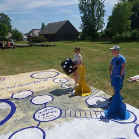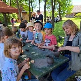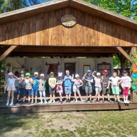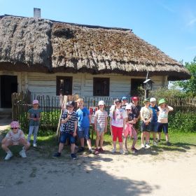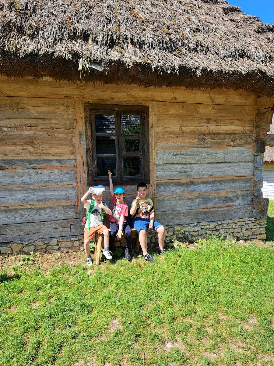1 czerwca uczniowie klas pierwszych wraz z opiekunami wybrali się na festyn z okazji Dnia Dziecka do Parku Etnograficznego w Tokarni. Podczas naszego pobytu odbyły się różne warsztaty i pokazy. Dużym zainteresowaniem wśród dzieci cieszyły się warsztaty plastyczne inspirowane scenerią skansenu, m. in. „Pejzaż malowany naturą” oparty na naturalnych materiałach oraz warsztaty z lepienia z gliny. Uczniowie również chętnie brali udział w różnych grach i zabawach takich jak m.in. przeciąganie liny, czy też gry planszowe dużego formatu. Oprócz dobrej zabawy celem wycieczki było również ukazanie dzieciom warunków życia ludzi w dawnych czasach, czynności gospodarskich, upraw polowych oraz tradycyjnych rzemiosł i zawodów. Dzieci z zainteresowaniem słuchały wiadomości, o tym jak wyglądało życie ludzi wiele lat temu, w jakich warunkach żyli ludzie, jak przygotowywali jedzenie, zwiedzały i podziwiały stare chaty, zagrody, kuźnię, aptekę, dom lekarza, dawny sklep, wiatrak, młyn, obserwowały zwierzęta domowe w niektórych zagrodach.