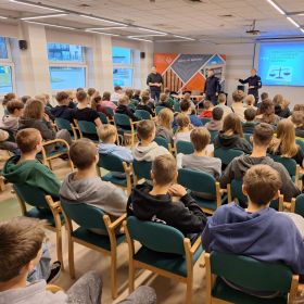 W dniu 28.11.2024 r. uczniowie klas 6-8 wybrali się do Wojewódzkiej Biblioteki Publicznej w Kielcach, gdzie uczestniczyli w zajęciach profilaktycznych pt. "Uzależnienia. Odpowiedzialność prawna nieletnich". Warsztaty prowadzili funkcjonariusze z Komendy Miejskiej Policji oraz przedstawiciel Powiatowej Stacji Sanitarno-Epidemiologicznej. Następnie uczniowie wzięli udział w lekcji bibliotecznej, podczas której poznali specyfikę pracy bibliotekarzy, zasady korzystania z różnych kategorii zbiorów oraz oferowanych usług bibliotecznych.
