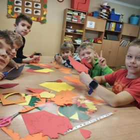 Jesień zawitała do naszej świetlicy nie tylko za oknem, ale i w sali, gdzie dzieci z zapałem tworzyły kolorowe jesienne dekoracje – barwne liście i kwiaty, które nadały wnętrzu odpowiedni klimat. Zajęcia były poświęcone jesieni oraz zmianom zachodzącym w przyrodzie, szczególnie w świecie zwierząt.