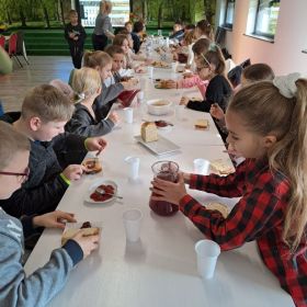 Warsztaty kulinarne, podczas których dzieci mogły wykonać własne weki – soki i kompoty z sezonowych owoców – to doskonała forma aktywności, rozwijająca zdolności manualne i świadomość zdrowego odżywiania. Poczęstunek w postaci chałki z domowym dżemem oraz malinowy sok to przemiły gest od gospodarzy, podkreślający atmosferę gościnności i tradycji. Dodatkową atrakcją były skoki na sianie, które okazały się świetną zabawą i okazją, aby rozładować energię.