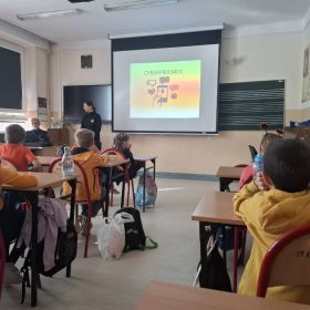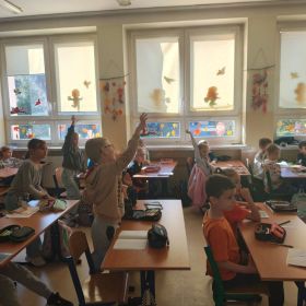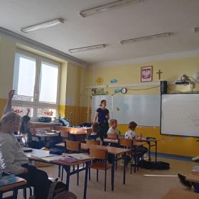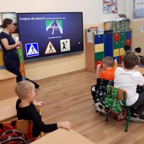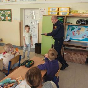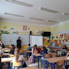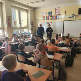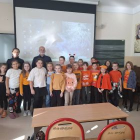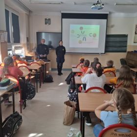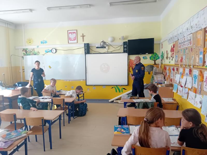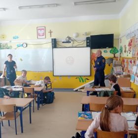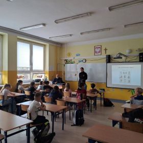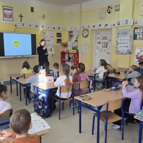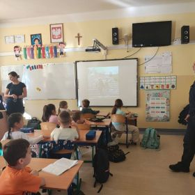 W ramach programu profilaktycznego "Bezpieczne Kielce ze Strażą Miejską" odbyły się zajęcia dla dzieci z oddziału przedszkolnego oraz uczniów klas I-III, które przeprowadzili funkcjonariusze Straży Miejskiej. Cele programu koncentrują się wokół: przekazywania i utrwalania podstawowych zasad bezpieczeństwa, przekazywania informacji na temat istniejących zagrożeń dla zdrowia i życia dzieci oraz wyrabiania właściwych postaw wobec różnego rodzaju zagrożeń. Zajęcia w oddziale przedszkolnym dotyczyły zasad zachowania podczas zabaw w domu, w szkole i na podwórku oraz bezpiecznego poruszania się po drodze. W klasach młodszych uczniowie uczyli się, jak umiejętnie radzić sobie ze złością, aby nikomu nie zrobić krzywdy.