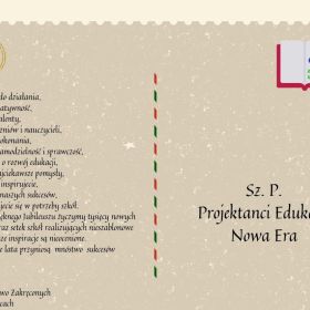 W roku szkolonym 2022/2023 braliśmy udział w ogólnopolskim konkursie „Projektanci edukacji”. Podjęliśmy wówczas szereg ciekawych i innowacyjnych działań promujących czytelnictwo. Zdobyliśmy dla szkoły certyfikat „Dobrze zaPROJEKTowana szkoła 2023”. W bieżącym roku szkolnym ponownie podjęliśmy wyzwanie – tym razem zadanie konkursowe polegało na przygotowaniu CZEGOŚ celebrującego 15-lecie „Projektantów edukacji”. W programie Canva opracowaliśmy kartkę z życzeniami i wygraliśmy!