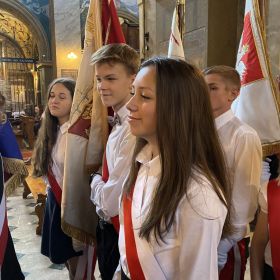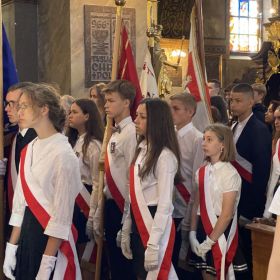 W środę, 7 września delegacja naszych uczniów z pocztem sztandarowym brała udział w uroczystości upamiętniającej żołnierzy 4. Pułku Piechoty Legionów z Kielc, którzy we wrześniu 1939 roku bronili Westerplatte. Najpierw uczestniczyliśmy w mszy świętej w Bazylice Katedralnej w Kielcach. Przedstawiciele organizatorów zawracali uwagę na duży udział młodzieży w uroczystości.