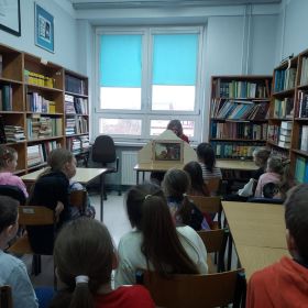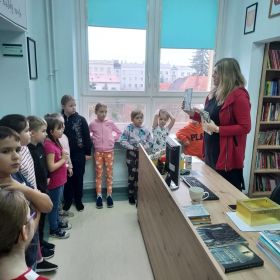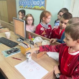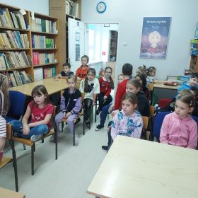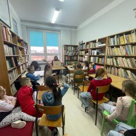 Uczniowie z zaciekawieniem wysłuchali opowieści pt. „Wypożyczalnia skrzydeł”, zaprezentowanej w formie teatru kamishibai. Dodatkową atrakcją było samodzielne przybijanie pieczątki biblioteki na pamiątkowej karcie.