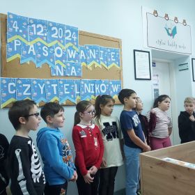 4 grudnia w naszej bibliotece odbyło się wyjątkowe wydarzenie – „Pasowanie na Czytelnika", w którym uczestniczyli uczniowie klas I a i I b.