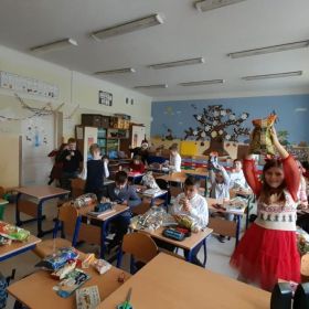 Dzień Świętego Mikołaja w klasie 2b od rana zapowiadał się niezwykle radośnie i magicznie. Uczniowie nie mogli doczekać się chwili, gdy wszyscy razem będą świętować w atmosferze świątecznej muzyki i prezentów pod choinką. Święty Mikołaj odwiedził klasę 2b niepostrzeżenie, podrzucając tajemnicze paczuszki pod pięknie udekorowaną choinkę. Uczniowie natychmiast przystąpili do rozpakowywania paczek, które z cudowną starannością i troską przygotował dla nich Mikołaj. Po rozpakowaniu prezentów wszyscy zanurzyli się w magicznej atmosferze świątecznych dźwięków. Dzień Świętego Mikołaja w klasie 2b był pełen uśmiechów, muzyki i wspólnych chwil, które na długo pozostaną w pamięci uczniów. Niech ta magia świąt trwa jak najdłużej!