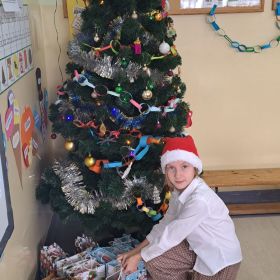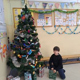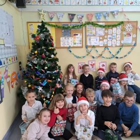 W dniu mikołajek atmosfera w klasie 2a od samego rana była bardzo ekscytująca. Uczniowie z niecierpliwością i uśmiechami na twarzach oczekiwali momentu otrzymania prezentów. Gdy nadszedł czas ich przekazania przez rodziców i ustawienia pod choinką , rozległy się radosne okrzyki i śmiech. Po otwarciu prezentów uczniowie mogli razem świętować, smakując otrzymane słodkości i rozmawiając o podarunkach. Ten niezwykły dzień z pewnością wprowadził ducha świąt do szkolnej codzienności.