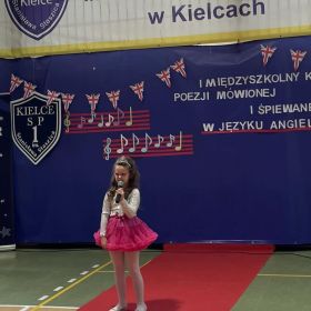 Z wielką radością informujemy, że nasza uczennica Weronika Rugor została wyróżniona w „Międzyszkolnym Konkursie Poezji śpiewanej i mówionej w języku angielskim”, zorganizowanym przez Szkołę Podstawową nr 1 im. Stanisława Staszica w Kielcach. Weronika zaprezentowała znany utwór jednej z bajek Disneya „Try everything”, którą w oryginale wykonuje Shakira. To ogromne wyróżnienie nie tylko dla niej, ale także dla naszej szkoły, która może pochwalić się utalentowaną uczennicą. Serdecznie gratulujemy i życzymy dalszych sukcesów!