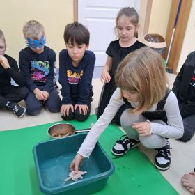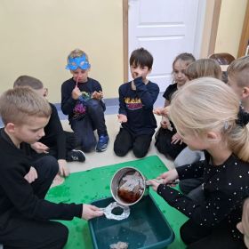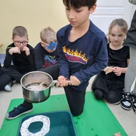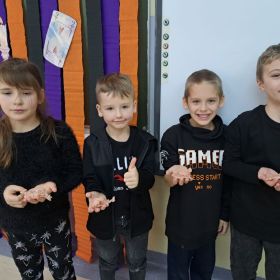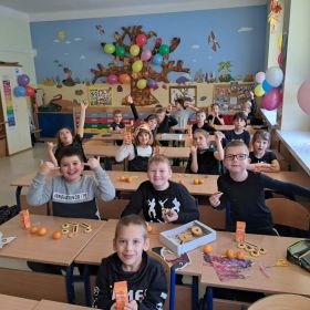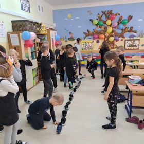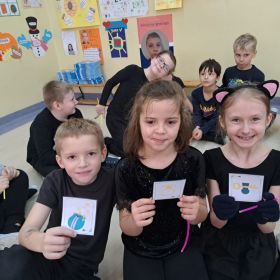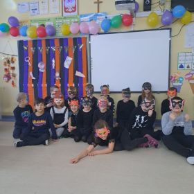 W ubiegłym tygodniu w klasie 2a odbyła się dyskoteka andrzejkowa. Zgodnie z obyczajem, uczestnicy zabawy mogli skorzystać z różnorodnych wróżb, takich jak ustawianie butów, wyrzucanie szczęśliwej liczny, losowanie karteczek z przepowiednią, czy lanie wosku przez dziurkę od klucza. Motywem przewodnim imprezy był ubiór w kolorze czarnym, który doskonale komponował się z maskami samodzielnie wykonanymi przez dzieci. Atmosferę imprezy dopełniła muzyka i taniec. Nie zabrakło