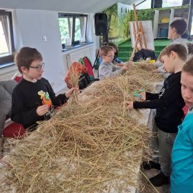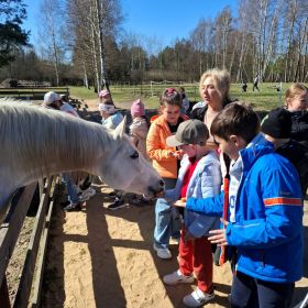 3 kwietnia odbyła się wycieczka szkolna uczniów klasy 1 a i 1 b do ” Zagrody Wieś. Co” w Skarżysku Kamiennej. Uczniowie zwiedzali zagrodę, byli w koźlarni, królikarni, stajni i kurniku, mieli możliwość karmienia zwierząt. Następnie udali się na poczęstunek bułeczkę drożdżową z powidłami i herbatkę owocową. Po posiłku odbyły się warsztaty edukacyjne pt. ,,Wielkanocne sianowije", na których uczniowie mogli wykazać się sprawniścią i kreatywnością. Resztę czasu spędziliśmy na świeżym powietrzu. Pod koniec wizyty chętne dzieci wzięły udział w królikoterapii- każde mogło potrzymać i poprzytulać się do królika, zrelaksować się i wyciszyć. Na pewno nie była to nasza ostatnia wizyta w zagrodzie.