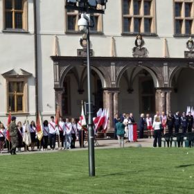 Po mszy, uczestnicy zgromadzili się przed Pałacem Biskupów Krakowskich, aby oddać cześć obrońcom Westerplatte.